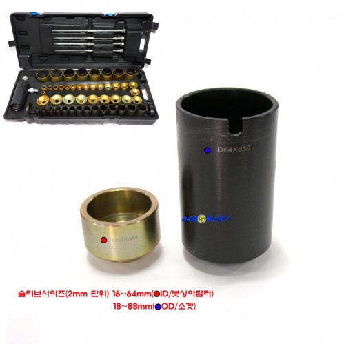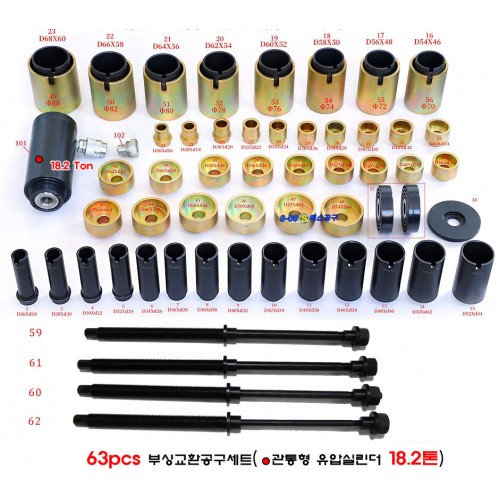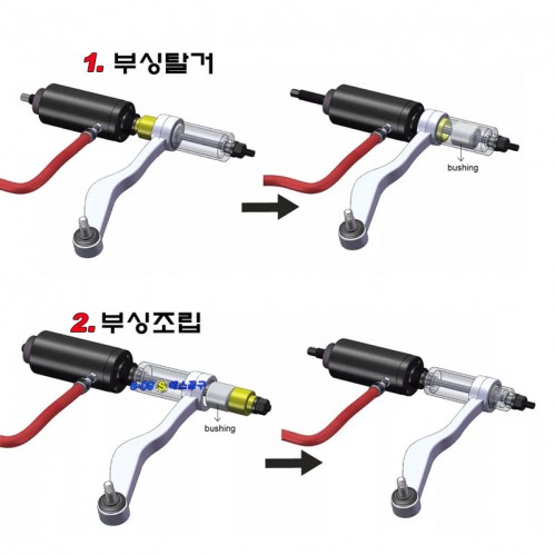 | - 부싱 베어링 씰을 분리 장착하는 유압실린더 방식 풀세트구성 - 국내 수입차량에 사용되는 각종 부싱의 손쉬운 교환 | |