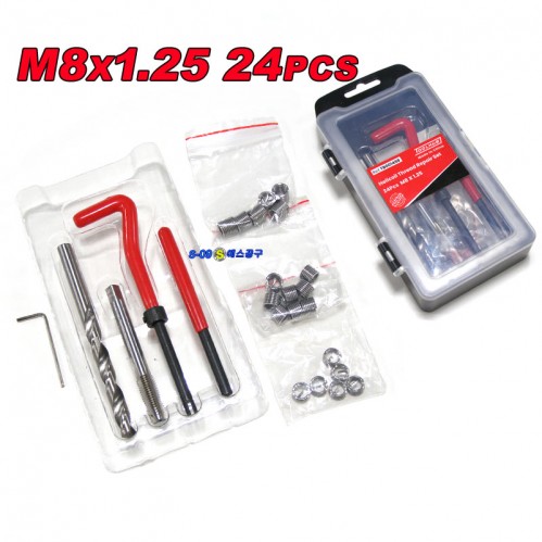 | - 나사산이 훼손된 경우 임의로 나사산을 만들어주는 공구 - 코일인서트의 길이가 3종류가 있어 두께에 따라 다양한 작업에 적합 - 기존나사보다 직경이 크기 때문에 접촉면적이 커지고 자연적으로 기존 나사보다 체결력이 강함 - 보관용케이스 M8*1.25 24PCS | |